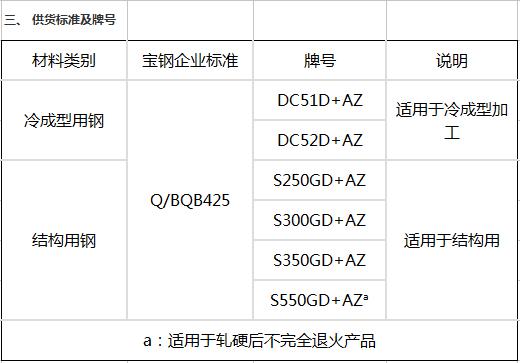 適用于結構用 S300GD+AZ S350GD+AZ S550GD+AZa a:適用于軋硬后不完全退火產品