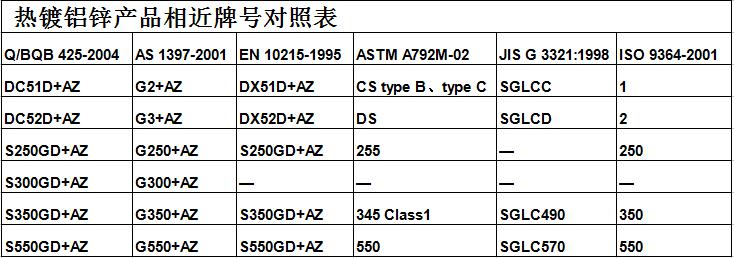 鍍鋁鋅用途按型號分為:沖壓專用鍍鋁鋅AZM150、家電專用環保鍍鋁鋅AZ150、建筑專用高強鍍鋁鋅S550、環保耐指紋鍍鋁鋅DX51D-AZ75/75-N5、開關柜專用耐指紋鍍鋁中厚板鋅AZ150、LED背光源專用環保耐指紋鍍鋁鋅超薄板;