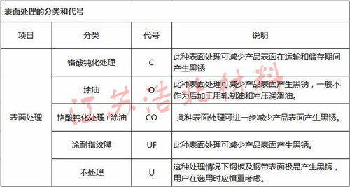 這兩種方法可同時采用。  C:化學鈍化     O:涂油     CO:鈍化+涂油     U:未經處理