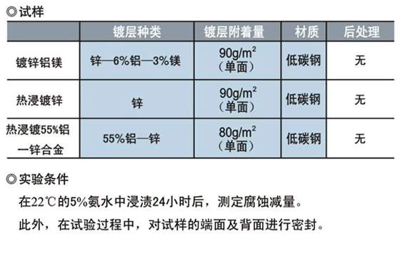約7年的暴露結果表明,鍍鋅鋁鎂鋼板比熱浸鍍鋅鋼板的耐蝕性約高4倍。隨著時間的推移,鍍鋅鋁鎂鋼板比其他鍍層鋼板出現的腐蝕減量下降,因此鍍鋅鋁鎂鋼板與其他鍍層鋼板的耐蝕性差距將會進一步拉大。